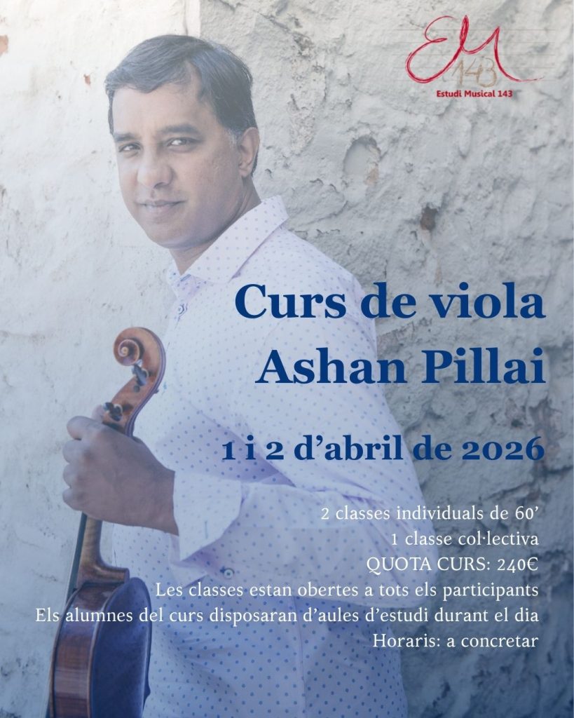 A més, l’1 i 2 d’abril acollim el Curs de viola amb Ashan Pillai — una bona manera de mantenir la pràctica durant les vacances de Setmana Santa!