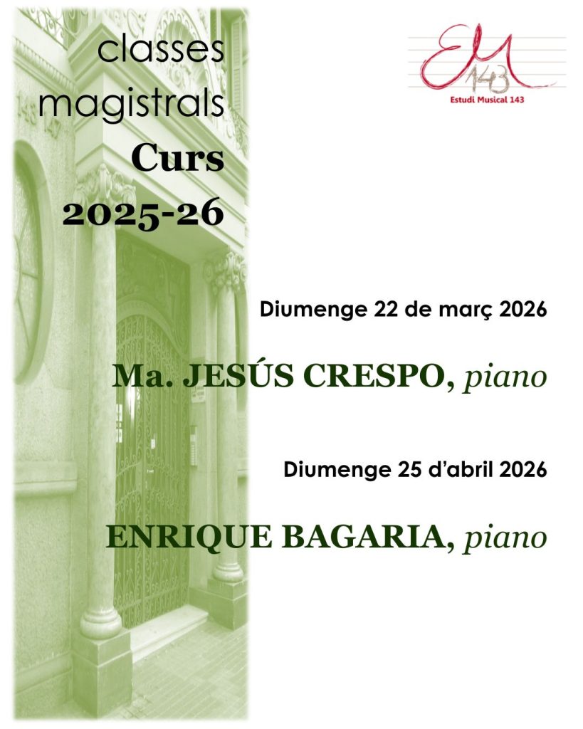 Comptarem amb Maria Jesús Crespo, i l’Enrique Bagaria per masterclasses de piano.